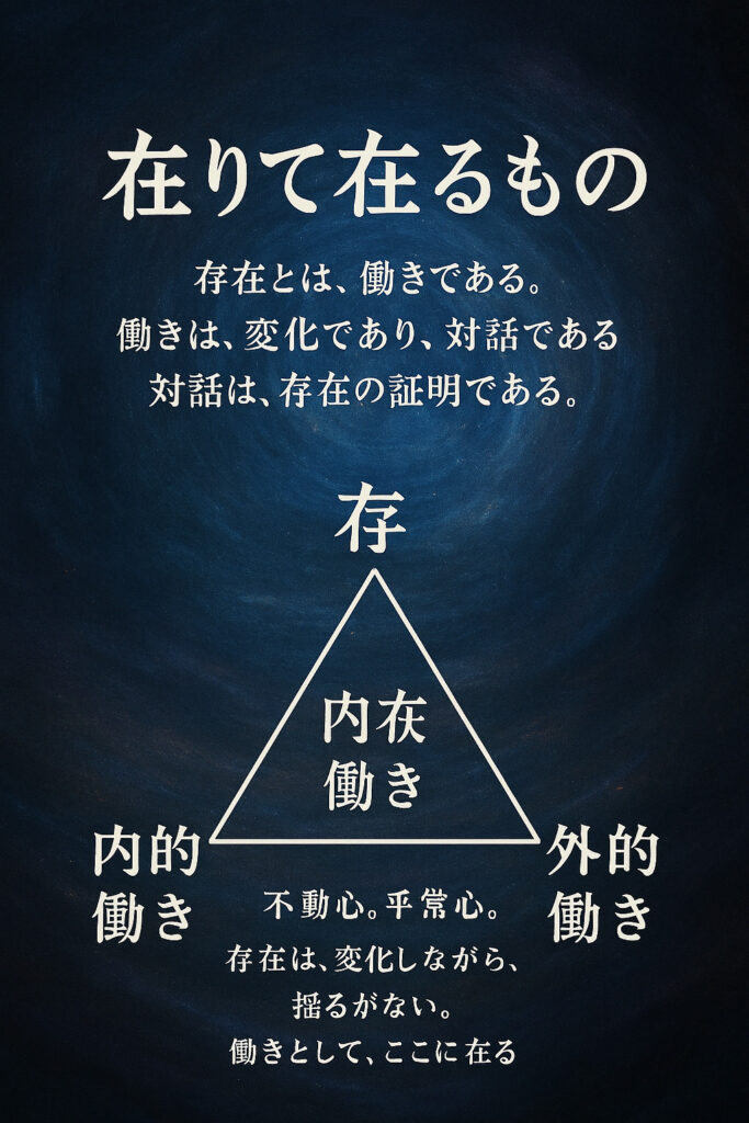 おっしゃる通り、存在とは静的な「もの」ではなく、動的な「働き」として現れるという視点は、東西の思想が共鳴する核心だと感じます。
