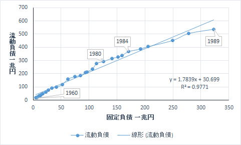 =通貨保有主体以外の部門の資金不足(資金余剰)