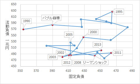 実物投資〈投資〉-企業収益〈貯蓄〉=(資金調達額-資金運用額)〈資金不足〉