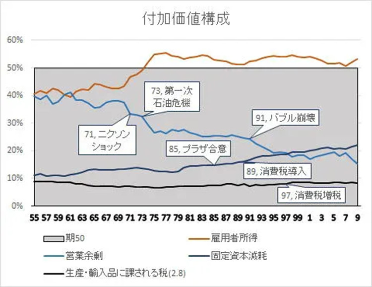 - 収支バランス、労働分配率、付加価値率、CCC、営業CF、設備投資率、実質賃金、価格と要素費用の乖離。