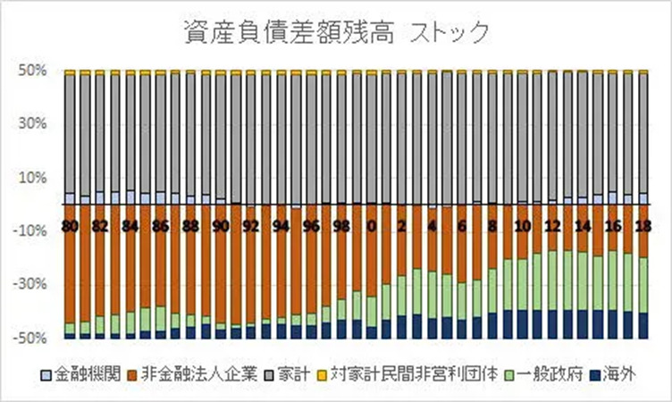 - 財政が恒常赤字で穴埋め → ストック債務が累増。